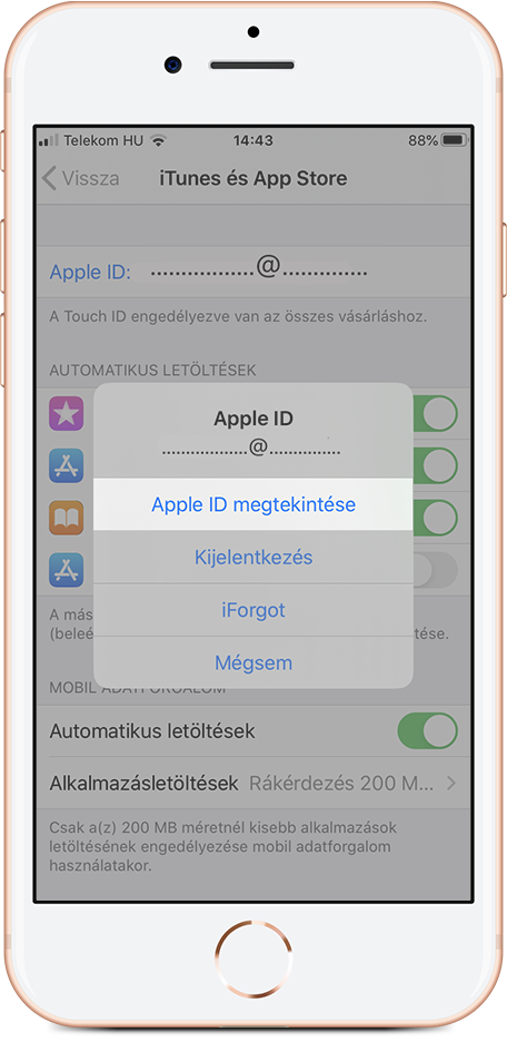 Jelentkezz be a Touch/Face ID-val vagy írd be az Apple azonosítót és jelszavadat;