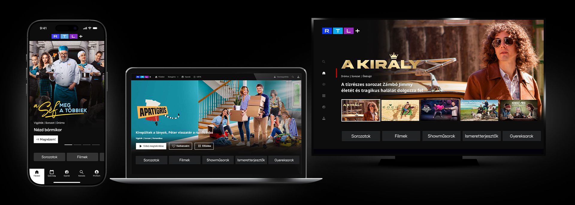 Az RTL+ egy streaming szolgáltatás, amivel hozzáférsz az RTL Magyarország saját gyártású sorozataihoz, showműsoraihoz, valamint nemzetközi filmekhez és sorozatokhoz.